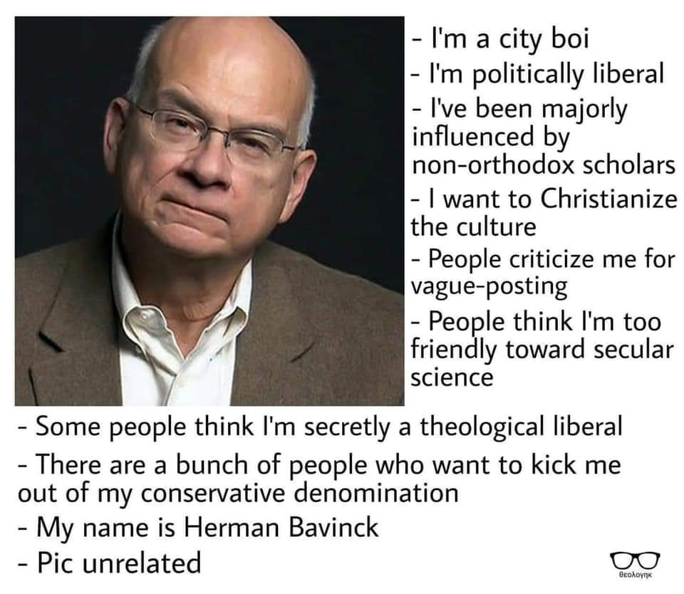 What is meant by politically liberal has changed over time. So we got to be careful with any equivocation there of Bavinck as a “political liberal” and what liberal means in late 1800s and early 1900s. If by “liberal” the meme means Classical Liberalism, that shouldn’t be equivocated with neoliberalism or even today’s shorthand for Woke political ideology (I am beginning to see neo-liberalism and Woke political ideology as distinct though Woke has affinity with neoliberalism, but biggest difference is modern woke political ideology doesn’t see the place for freedom of speech as famously argued by Herbert Marcuse which has been transmitted through Critical Theory).
