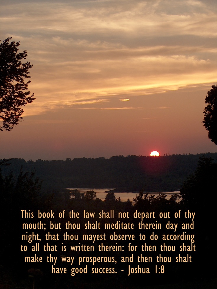 In Joshua1:8, there is not only attached encouragement to continually study and lay to heart of the commandments of God, but even more closely to read the law every day. “Not to depart out of the mouth,” means it is to be constantly in the mouth. The law is in our mouth, not only when we are sharing (teaching) it, but when we are reading it intelligently for ourselves, or conversing about it with others. To this there was to be added meditation, or reflection upon it both day and night (Psalm 1:2). It does not mean theoretical speculation about the law, such as the Pharisees indulged in, but a practical study of the law, for the purpose of observing it in thought and action, or carrying it out with the heart, the mouth, and the hand. Such a mode of employing it would be sure to be followed by blessings. “Then shalt thou make they way prosperous,” i.e., succeed in all thine undertakings (Deuteronomy 28:29), “and act wisely” (as in Deuteronomy 29:8).